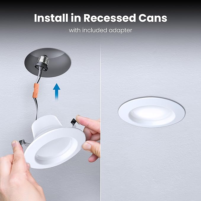 Installation : E26 adapter included, pre-mounted trim, compatible with 4-inch recessed boxes