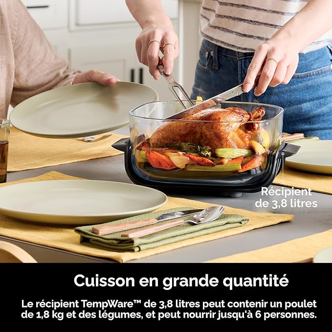 Offrez-vous la puissance d'une friteuse à air et bien plus encore grâce au Ninja CRISPI TempWare ! Ce système de cuisson portatif 4-en-1 comprend :