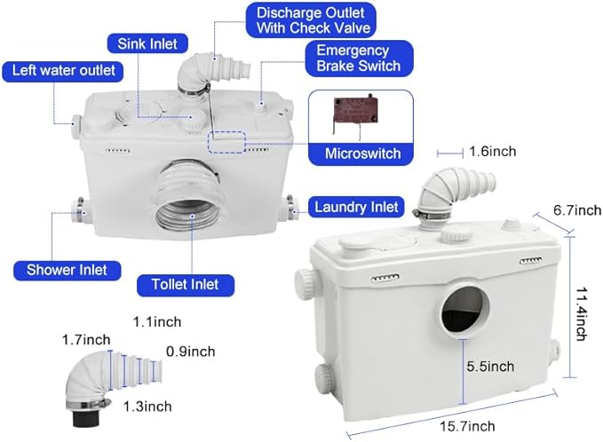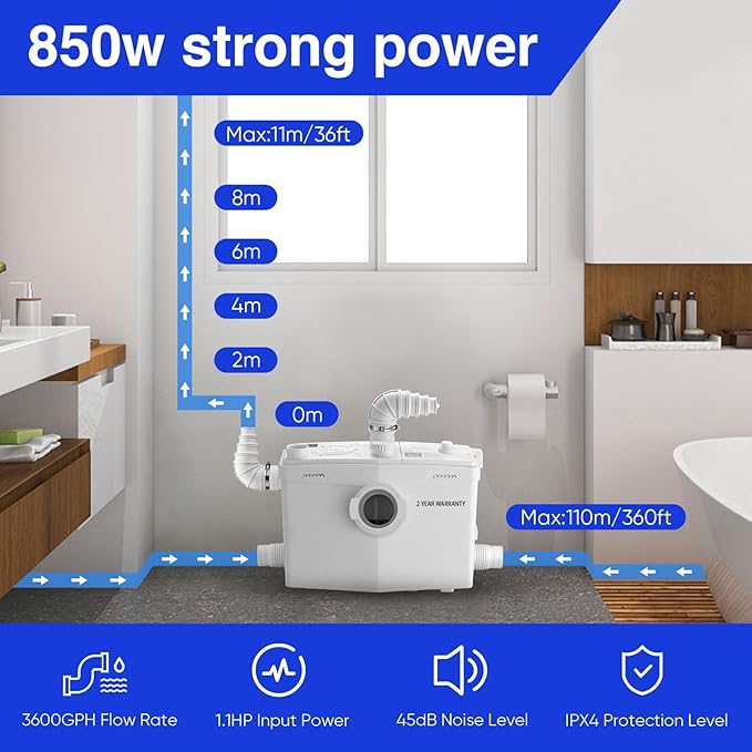 Transformez votre espace sanitaire en toute simplicité avec cette pompe broyeur sanitaire haute puissance de 800 W. Conçue pour gérer les eaux usées de votre WC, évier, douche ou lave-linge, cette pompe polyvalente assure une évacuation rapide et efficace, même en sous-sol.