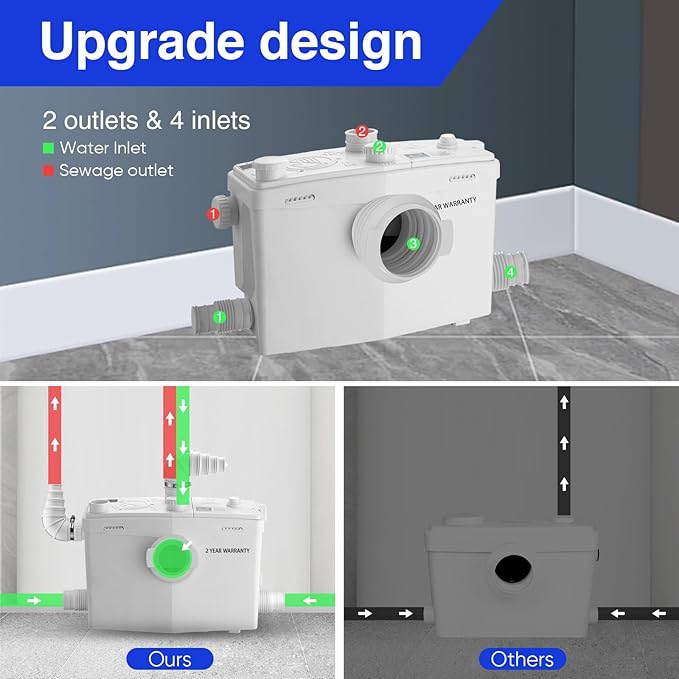 Idéale pour sous-sol ou salle de bain sans évacuation classique.
